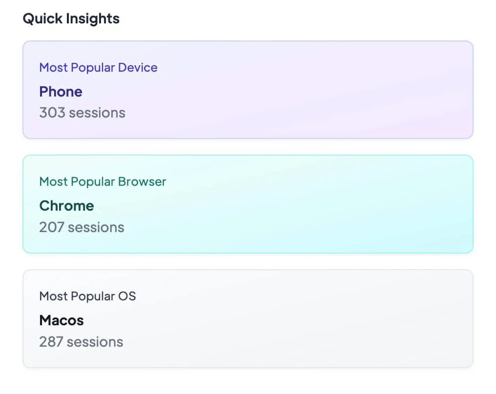 Get department-specific recommendations based on your data. Marketing sees UTM performance gaps. Product identifies which devices need optimization. UX spots friction in signup flows. Sales finds revenue opportunities.